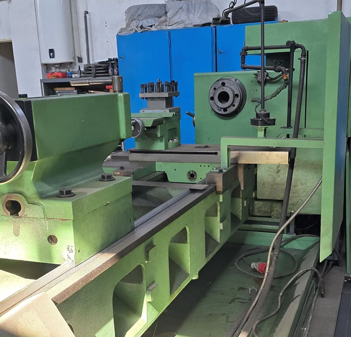 TOS TRENCIN SUI 80 used lathe offers swing over bed of 800 mm and turning length of 4000 mm, featuring spindle speeds from 14–1400 rpm. With recent overhaul and new electrical components, it's ready for your workshop needs.