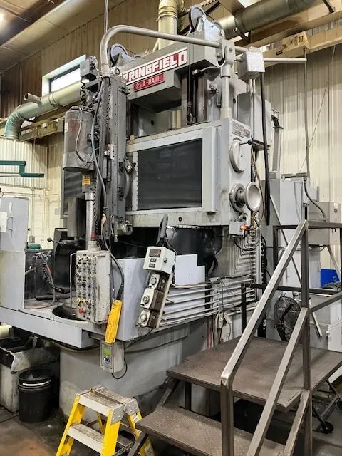 SPRINGFIELD 2-1/2 ATR Rail-Type Vertical Universal Grinder, 1980 model, in used condition. Features include a 36" table diameter, 50" swing, and 10 hp power with a 1 RPM rotation. Ideal for robust grinding tasks.